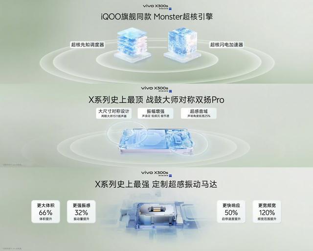 性能方面,该机搭载联发科天玑 9500 芯片,拥有 iQOO 同款 Monster 超核引擎,具备超核先知调度器、超核闪电加速器;具备 X 系列史上“最顶”战鼓大师对称双扬 Pro(两颗 1511),采用 1:1 对称设计,配备 X 系列史上最强定制超感振动马达,震动量提升 32%。